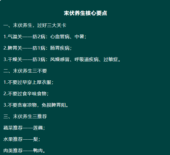 末伏宜清補,以健脾利濕、益氣和胃為主,可適量多吃祛濕熱、健脾胃的食物。Pw4速刷資訊——每天刷點最新資訊,了解這個世界多一點SUSHUAPOS.COM