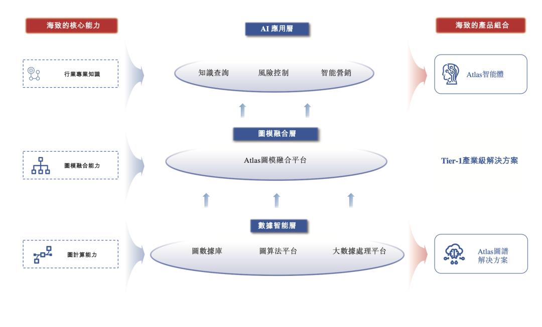 具體而言,海致科技主要向客戶提供兩項突破性的人工智能解決方案:Atlas圖譜解決方案,基于公司強大的圖計算與數據分析能力構建,包含DMC數據智能平臺、Atlas知識圖譜平臺及AtlasGraph圖數據庫;Atlas智能體,基于公司圖模融合技術開發的智能體解決方案。這些解決方案協同運作,將各種企業數據轉換為結構化知識,增強基于推理的分析并實現智能自動化。