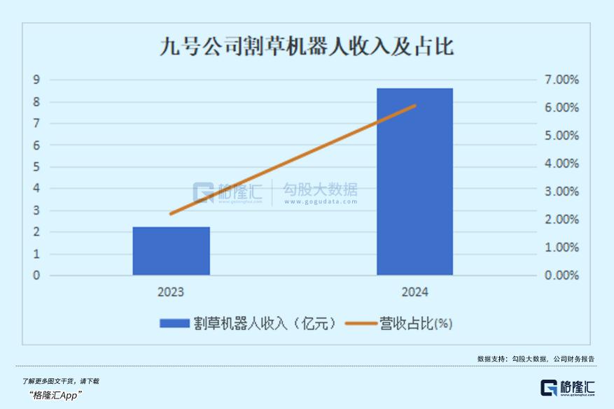 2021年9月,九號旗下未嵐大陸發布了全球首款超超靜音無邊界智能割草機器人 Navimow,采用RTK定位技術,實現行業重要突破。該業務營收近年保持一個快速增長的勢頭。