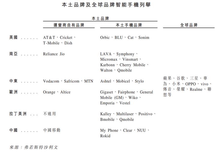 全球智能手機市場可分為全球品牌、本土品牌兩類。