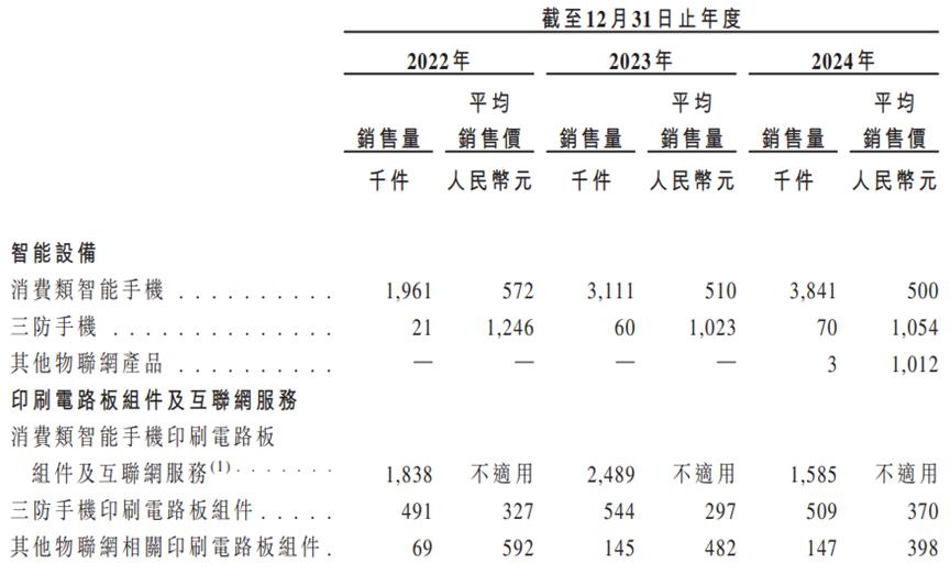 按產品類別銷售的每件產品的銷售量及平均售價,圖片來源于招股書