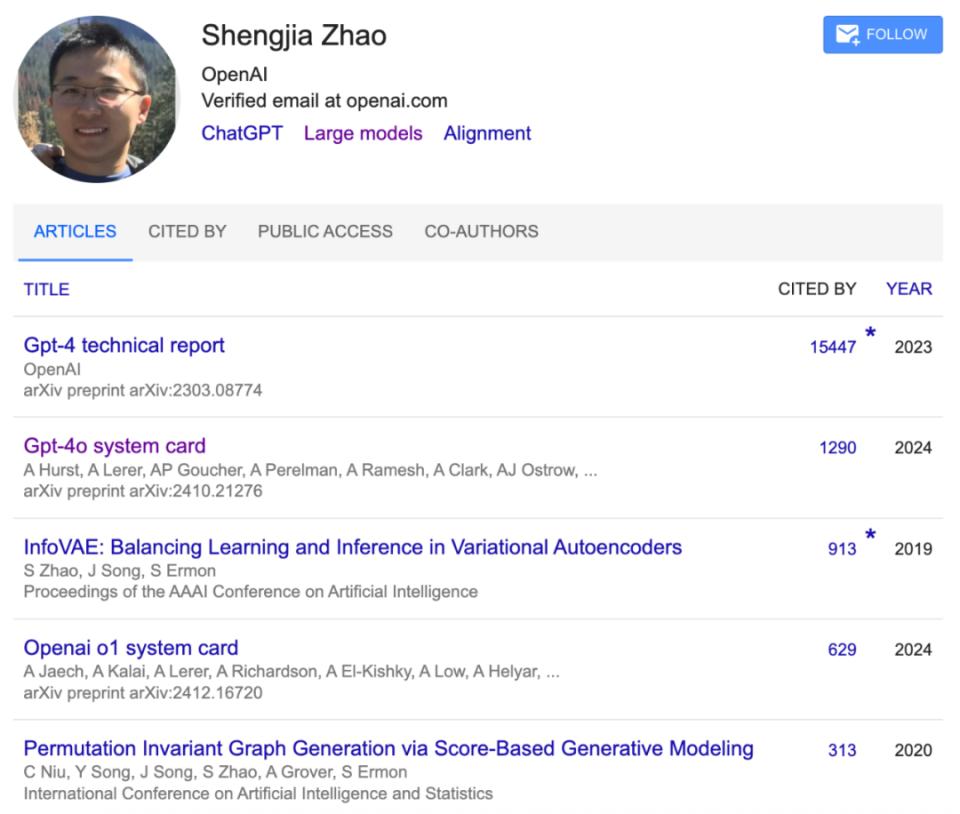趙晟佳(Shengjia Zhao)則領導OpenAI的合成數據團隊,參與從ChatGPT到GPT-4o幾乎所有重要項目。