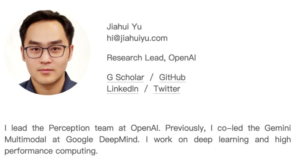 于佳慧(Jiahui Yu)主導了GPT-4o圖像生成系統;