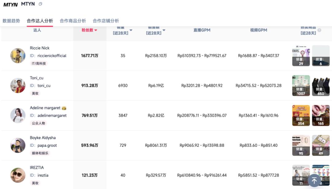 “美ONE擅長做內(nèi)容、孵化KOL,但對簽約的外部主播掌控力較弱,就難以釋放直播能力優(yōu)勢。”上述TikTok相關(guān)人士表示。“而且印尼市場的客單價有限,美妝品類的客單價只有6美元,美ONE擅長的品牌化營銷就難以充分發(fā)揮出來。”目前,MTYN在印尼MCN中僅排名80多位。