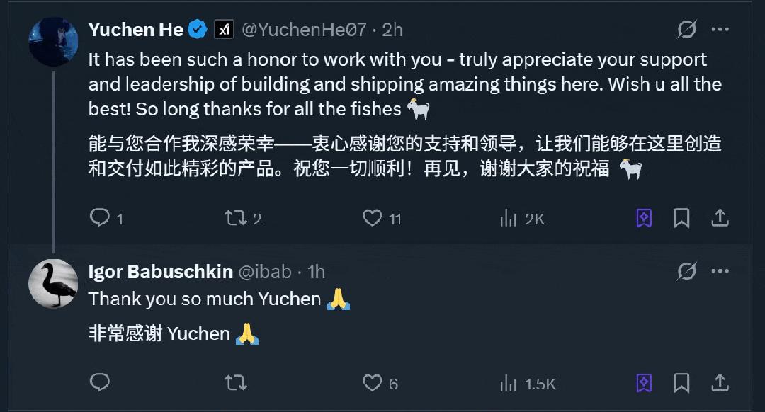 不過對于Igor Babuschkin的離開,xAI的同事們還是集體表達(dá)了不舍和祝福,畢竟他在xAI的貢獻(xiàn)和影響力是大家有目共睹的。