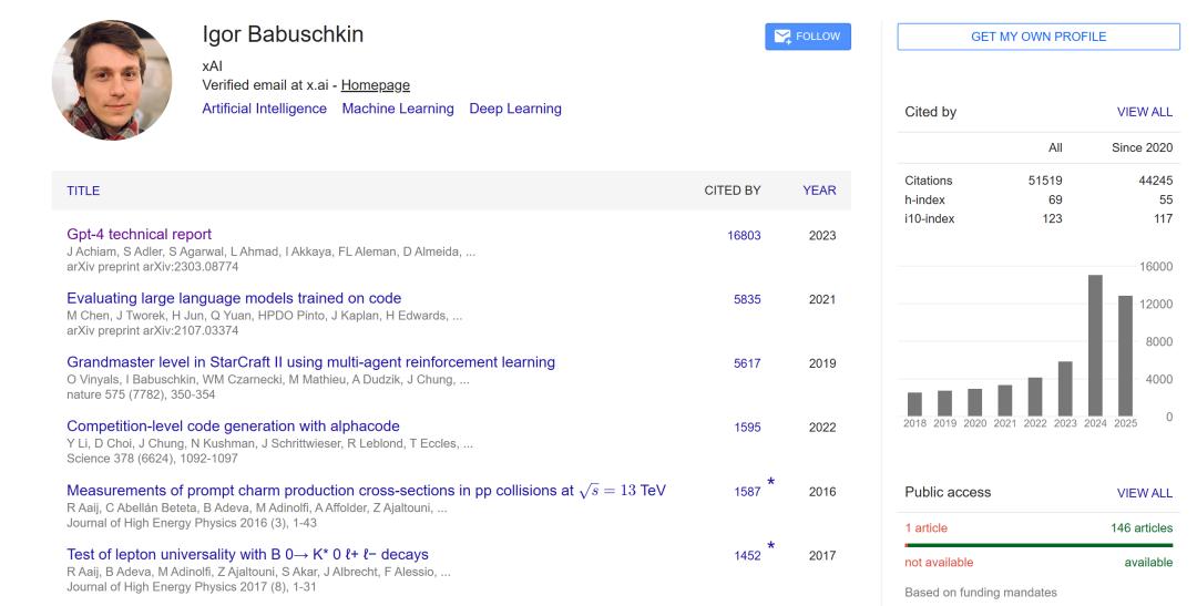 值得一提的是,Igor Babuschkin還是一位谷歌學(xué)術(shù)論文5萬引的大佬。
