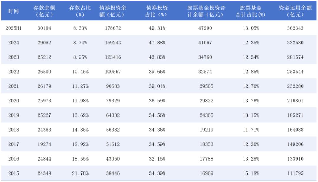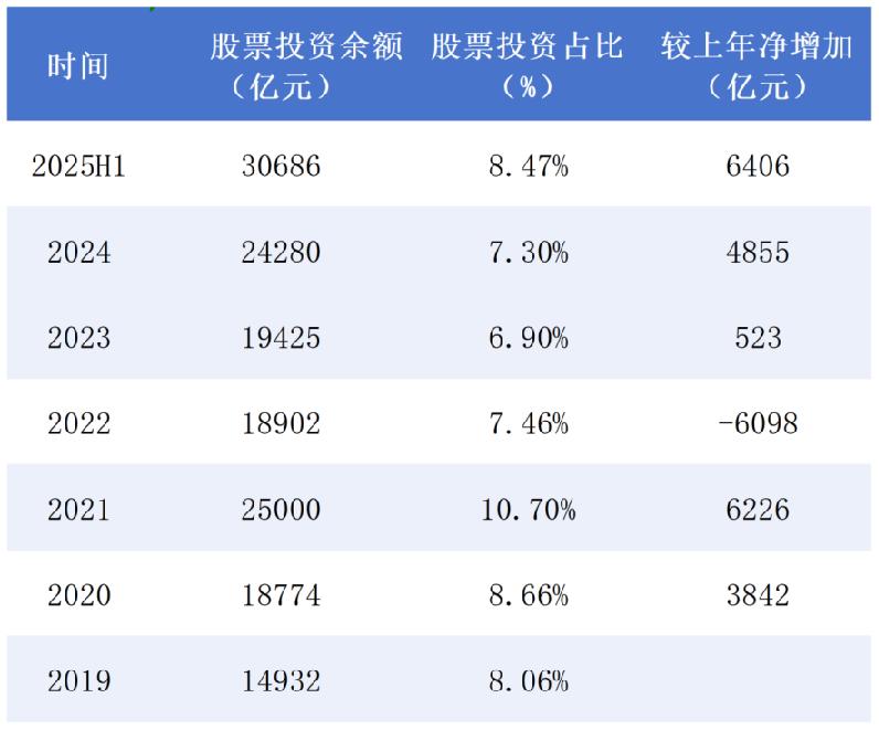 2025年8月15日,金融監管總局披露的信息顯示,截至今年上半年末,保險資金運用余額達36.23萬億元,同比增長17.39%。其中,人身險公司的股票投資規模達2.87萬億元,較年初增加6052億元;財險公司的股票投資規模達1955億元,較年初增加354億元。