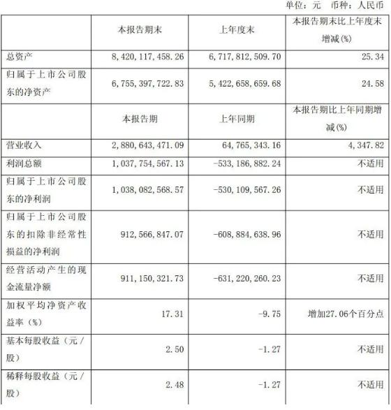 8月26日,寒武紀(688256.SH)發布的半年報,直接在資本市場投下了一枚重磅炸彈。2025年上半年,公司實現營業收入28.81億元,同比增長4347.82%;歸屬于母公司股東的凈利潤10.38億元,而去年同期還是虧損5.3億元,如今一舉扭虧為盈,基本每股收益也從-1.27元翻紅至2.5元。