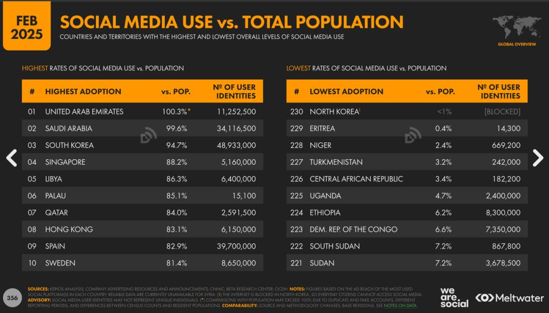 阿聯酋、沙特是全球社交媒體使用率(以人口比較)最高的兩個國家