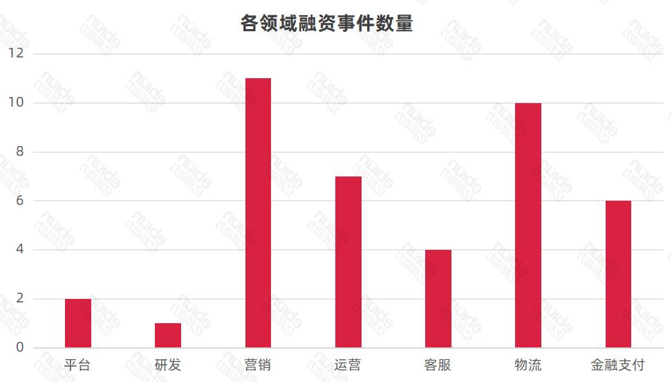 縱觀前三季度數據,跨境電商服務領域的資本偏好高度分化:營銷與物流服務商是當之無愧的吸金主力,融資事件數量領跑;運營與金融支付服務商構成了熱度略遜的第二梯隊;而客服、研發及平臺類企業則相對遇冷。