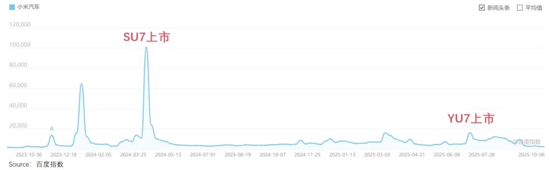 正如小米SU7,以30萬級價格提供2.78秒零百加速、800km續航及生態互聯等硬核體驗,驚艷了市場,消費者印象深刻。到了YU7,對比競品各有勝負,做到了可圈可點但“毫無波瀾”,因此哪怕銷量更高,熱度卻遠不如SU7。