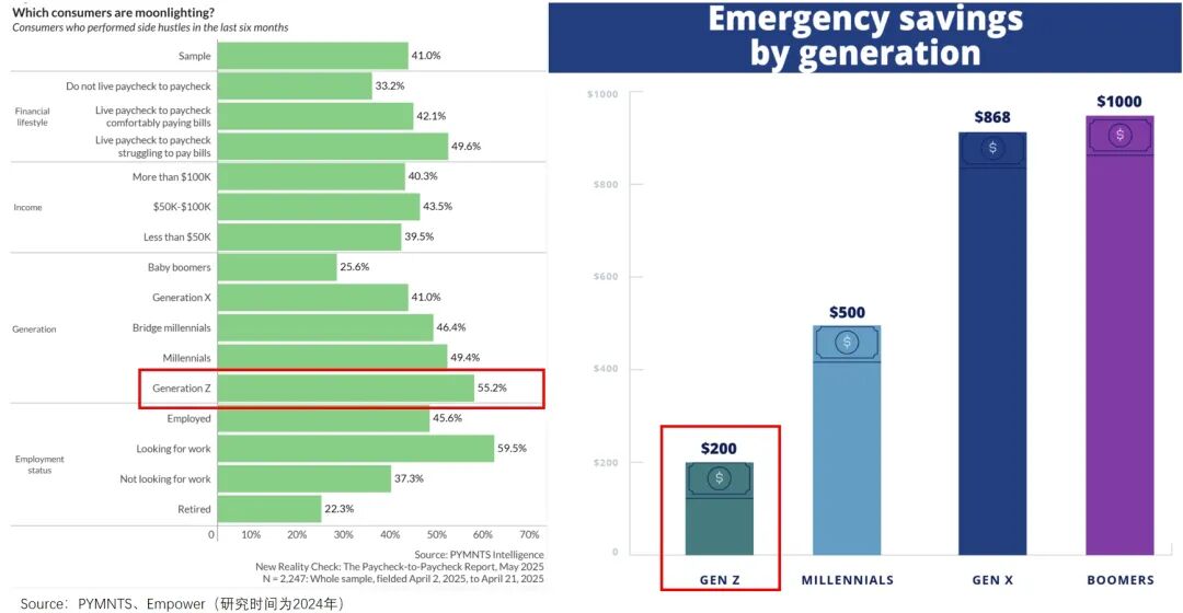 這不僅是福特工人的困境,也是北美年輕一代的縮影。相關報告顯示,超半數美國Z世代身兼多職,副業收入占到了他們總收入57%,盡管如此,許多人兜里仍存不夠200美元。