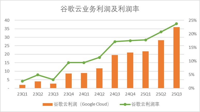 更夸張的是,受益于AI蓬勃發展,谷歌云的利潤率也在隨著營收規模節節高升,三季度谷歌云的單季度利潤率達到了23.7%,幾乎把硬件服務業務做成了軟件的利潤。