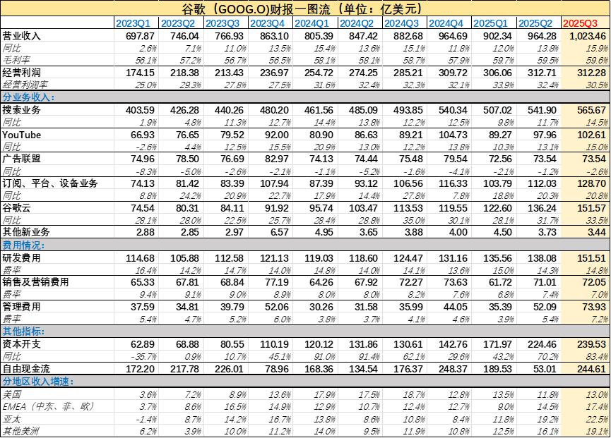 谷歌是目前為數不多既掌握桌面端流量入口(Chrome和Google),又掌握移動端流量入口(Android),還具備大模型能力(Gemini、Waymo等AI產品)和硬件(Pixel)的公司,因此谷歌的財報在一定程度上能夠反應現階段AI發展的全景。