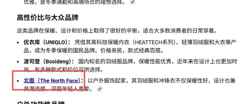 這種插入超鏈接的模式,并不會直接影響用戶的搜索結果(對話真實性),當然也無法通過AI技術提高既有廣告價格。