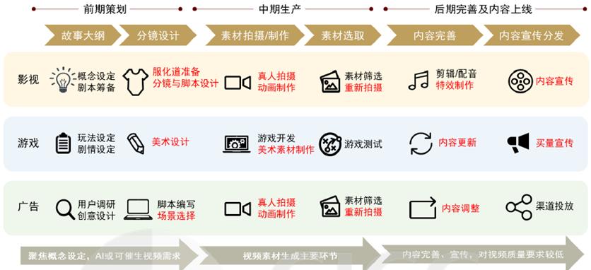 AI 將進一步滲透影視制作全流程,從劇本生成、分鏡設計到虛擬拍攝、特效渲染,實現 “ 小成本大制作 ” ;同時, AI 可通過分析用戶偏好,預測影視內容的市場表現,降低投資風險。