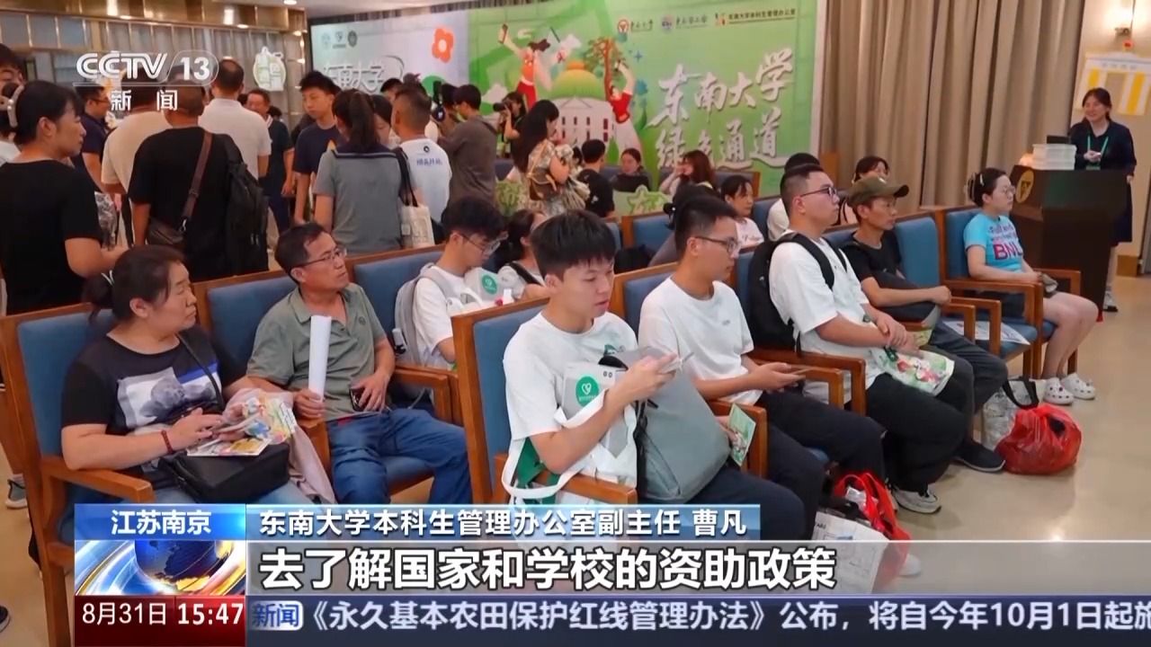 在江蘇南京,東南大學(xué)的新生報(bào)到現(xiàn)場則通過“一站式”打卡的形式,確保家庭經(jīng)濟(jì)困難學(xué)生能夠無憂入學(xué)。
