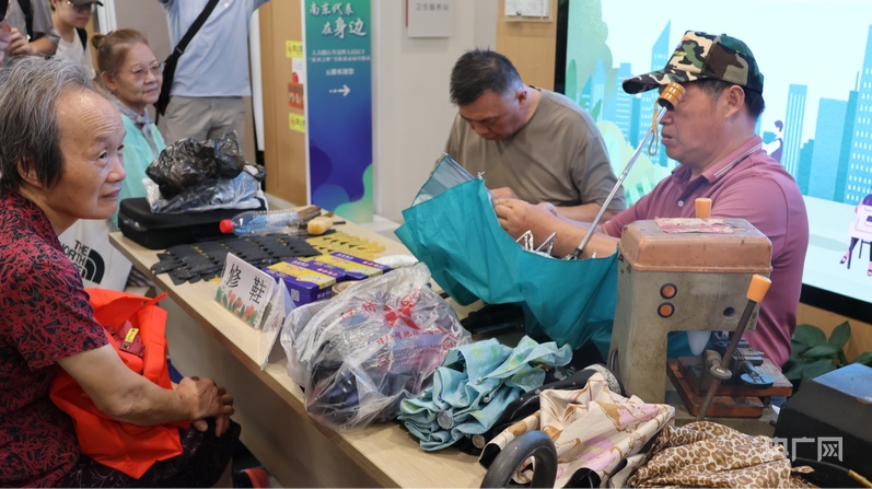周邊居民來到“便民集市”修鞋、修傘(央廣網(wǎng)實習(xí)記者 李婷 攝)
