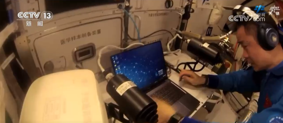 上周,乘組對低溫存儲裝置進行了巡視及維護。在將實驗樣品由-80℃溫區轉移至新安裝的空間冰箱后,完成了冷凝水檢查及擦拭等工作。此外,三名航天員完成了夢天實驗艙內定向攝像機檢查維護,以及筆記本電腦在軌測試等多項工作。