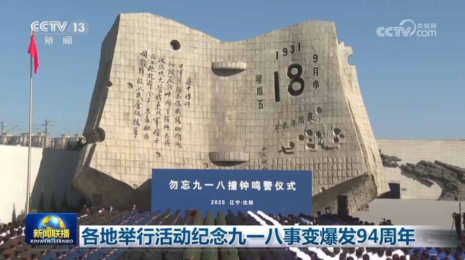 央視網消息(新聞聯播):九一八事變爆發94周年之際,各地舉行多種活動,傳承和弘揚偉大抗戰精神,銘記歷史、緬懷先烈、珍愛和平、開創未來。