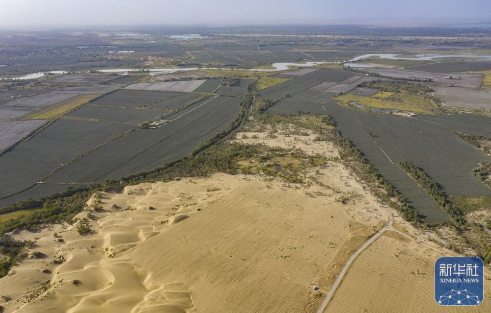 ↑ 在新疆尉犁縣境內的塔里木河南岸防沙治沙區拍攝的羅布麻種植區(右下)、治理之前自然形成的沙丘(左下)、塔里木河及周圍綠洲(上)(無人機照片,9月20日攝)。新華社記者 陳朔 攝Wq3速刷資訊——每天刷點最新資訊,了解這個世界多一點SUSHUAPOS.COM