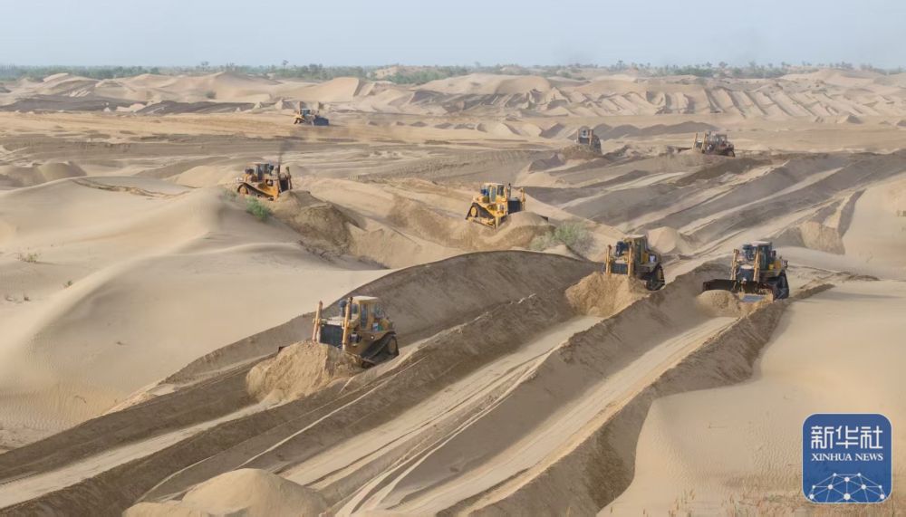 ↑ 5月22日,在新疆尉犁縣境內的塔里木河南岸防沙治沙區,大型機械在平整沙丘(無人機照片)。新華社發(汪志鵬 攝)Wq3速刷資訊——每天刷點最新資訊,了解這個世界多一點SUSHUAPOS.COM