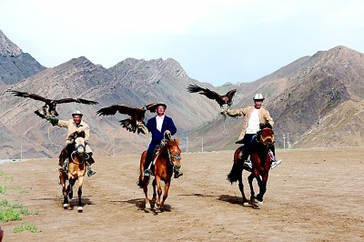 新疆阿合奇縣蘇木塔什鄉(xiāng)馴鷹文化旅游景區(qū)的柯爾克孜族馴鷹表演。本報(bào)記者劉宇航攝
