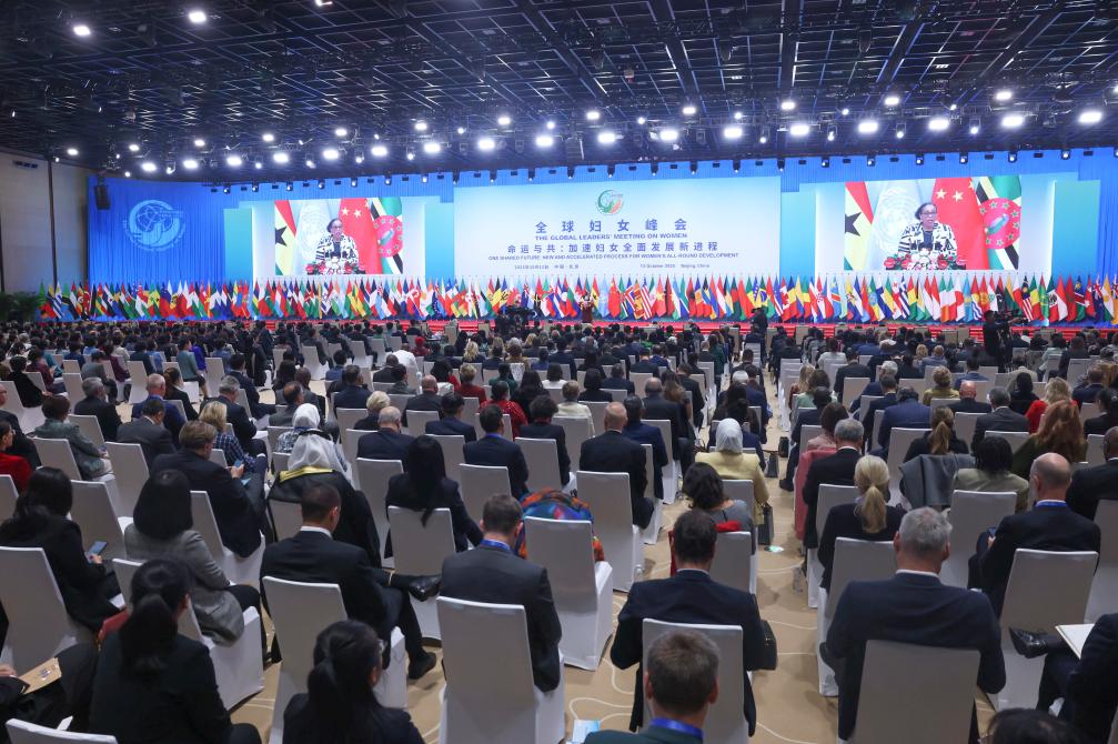10月13日下午,全球婦女峰會閉幕式在京舉行,約800名來自110多個國家和國際組織的代表出席。新華社記者 張玉薇 攝