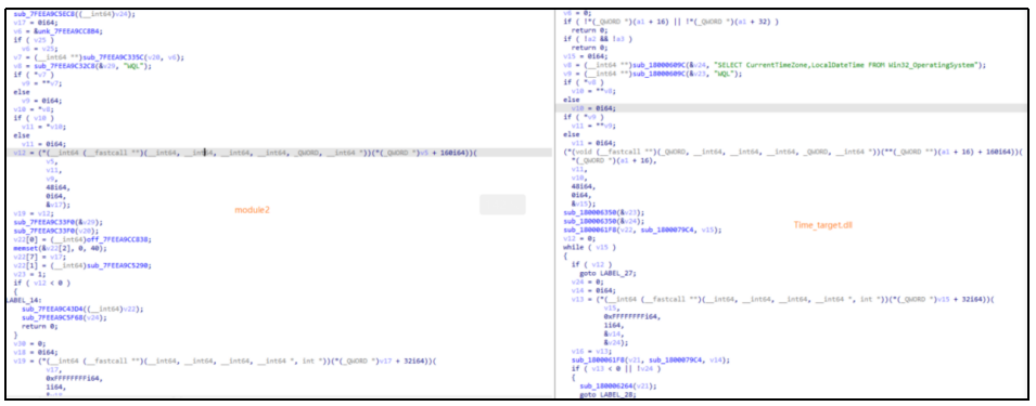 圖 module2(左)與Time_Target.dll(右)代碼同源性對(duì)比
