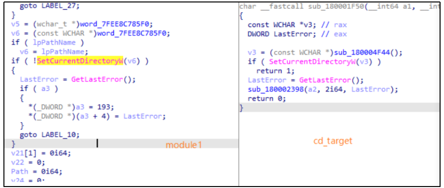 圖 module1(左)與Cd_Target.dll(右)代碼同源性對(duì)比