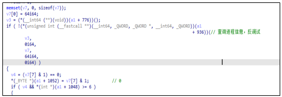 “Back_Eleven”由“eHome_0cx”加載運(yùn)行,具有嚴(yán)格運(yùn)行環(huán)境檢測(cè)機(jī)制,若發(fā)現(xiàn)運(yùn)行環(huán)境系統(tǒng)版本異常、調(diào)試程序正在運(yùn)行等情況,將啟動(dòng)自刪除功能。并且該武器在設(shè)計(jì)時(shí)加入了反調(diào)試功能,以防止被逆向分析。