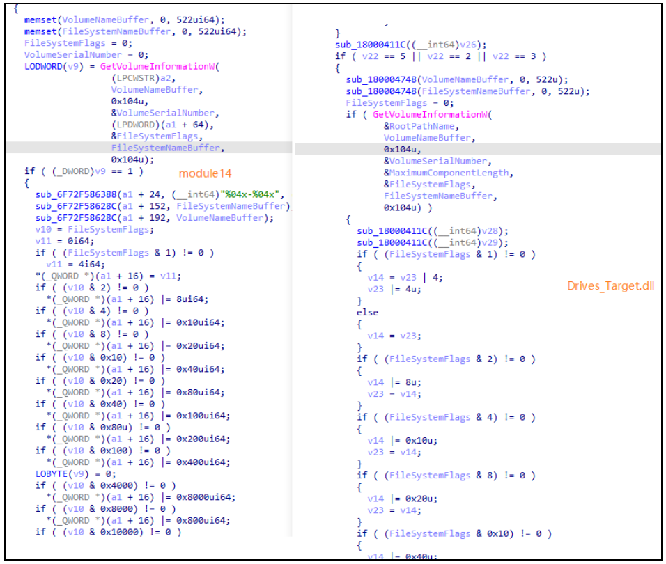 圖 module14(左)與Drives_Target.dll(右)代碼同源性對(duì)比