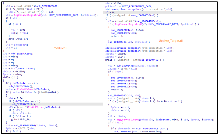 圖 module10(左)與UpTime_Target.dll(右)代碼同源性對(duì)比