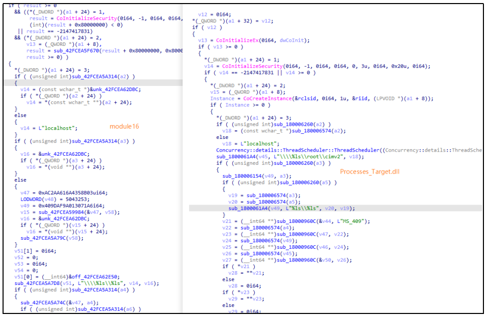 圖 module16(左)與Processes_Target.dll(右)代碼同源性對(duì)比
