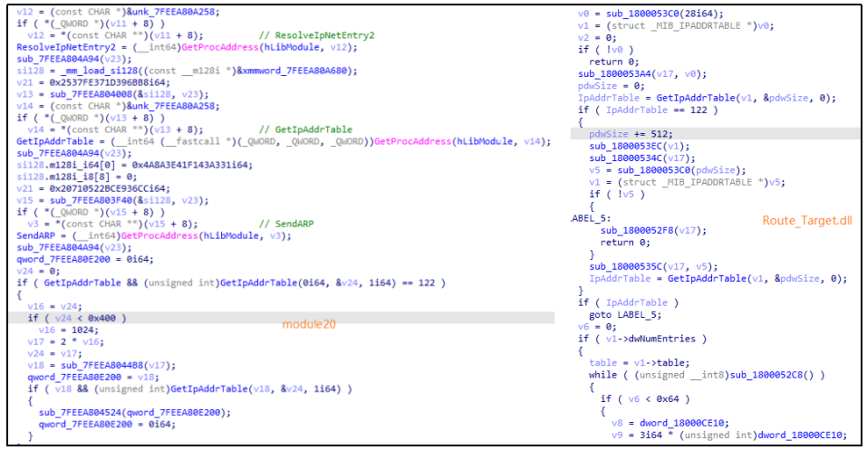 圖 module20(左)與Route_Target.dll(右)代碼同源性對(duì)比