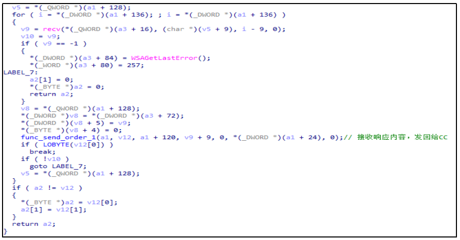 攻擊者利用該類(lèi)型網(wǎng)絡(luò)攻擊武器搭建網(wǎng)絡(luò)通信和數(shù)據(jù)傳輸隧道,實(shí)現(xiàn)了對(duì)其他類(lèi)型網(wǎng)絡(luò)攻擊武器的遠(yuǎn)程控制和竊密數(shù)據(jù)的加密傳輸,同時(shí)還具備信息獲取和命令執(zhí)行功能,在初始連接階段向主控端發(fā)送帶有數(shù)字“11”標(biāo)識(shí),命名為“Back_Eleven”。