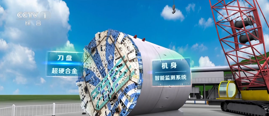 目前,引江補漢工程正在加速掘進。通過虛擬制作技術,您現在看到的就是正在地下工程里掘進的“江漢平安”號盾構機。它全長約135米,直徑達10.23米,相當于3層樓高,總重量超過2000噸。為應對復雜地質,“江漢平安”號裝備了多項“黑科技”。比如,刀盤采用超硬合金,無堅不摧;機身搭載智能監測系統,實時預警水壓與巖層的變化。正是這些“絕技”,讓它在地下200米深處能夠“揮斥方遒”。