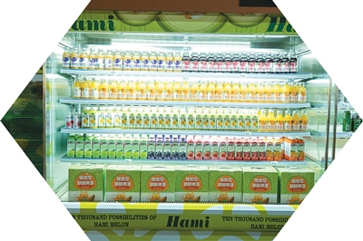 哈密瓜鮮果產業鏈平臺聯合推出的哈密瓜果汁、精釀啤酒等產品。
