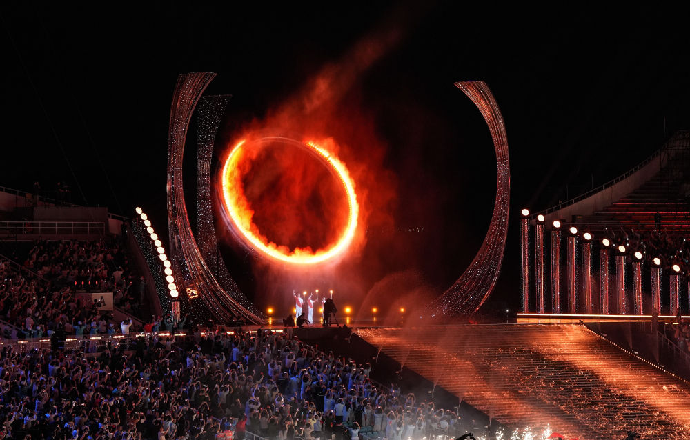 粵港澳三地火炬手共同點燃主火炬裝置,將開幕式氣氛推向高潮。十五運會開幕式現場指揮部副指揮長彭高峰說,火種是從南海1522米深處采擷可燃冰、再通過船載光伏發電遠程引燃形成“源火”,今晚在開幕式上點燃主火炬,形成熊熊燃燒的“科技之火”“藝術之火”,也呼應了綠色全運的理念。
