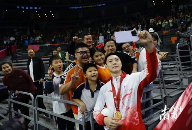 11月12日,十五運會男籃成年組決賽,廣東隊獲得冠軍后,胡明軒與球迷們合影留念。張由瓊 攝ZmU速刷資訊——每天刷點最新資訊,了解這個世界多一點SUSHUAPOS.COM