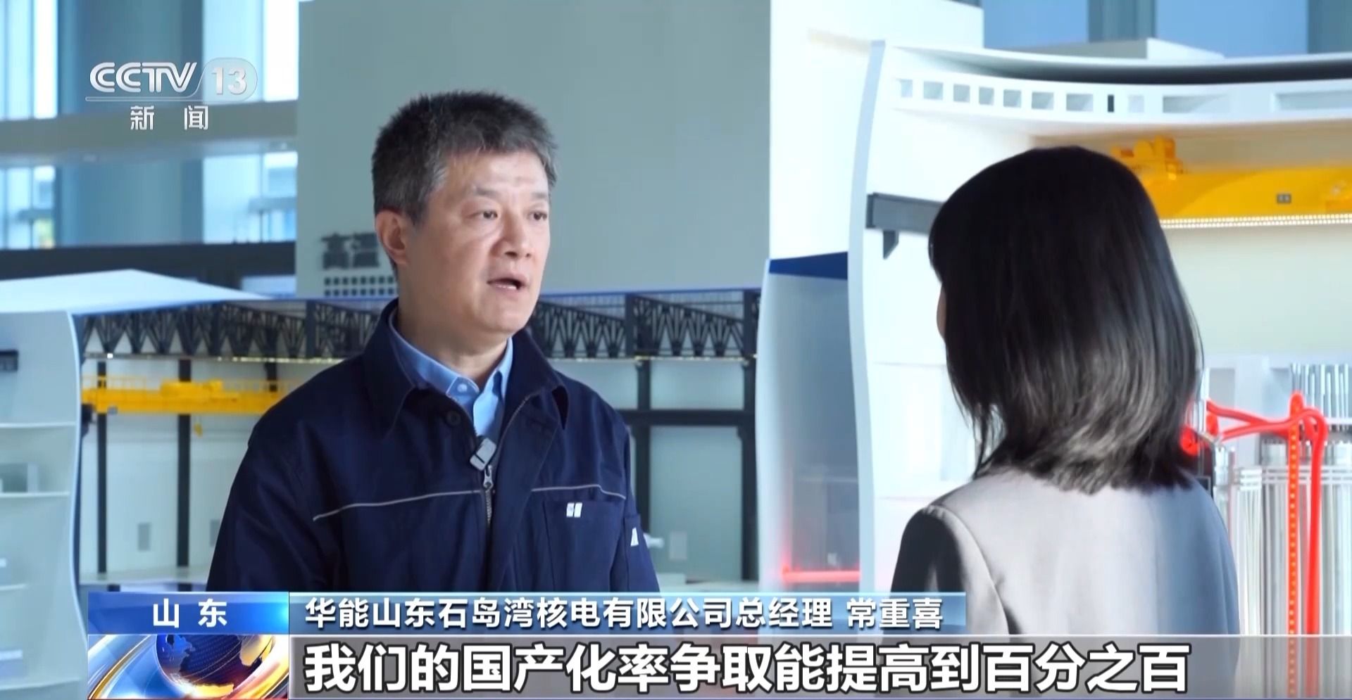 華能山東石島灣核電有限公司總經(jīng)理 常重喜:在“十五五”期間,國產(chǎn)化率爭取能提高到百分之百,同時提升整體系統(tǒng)設備的可靠性。在保證機組安全穩(wěn)定運行的同時,我們還會再做進一步的研究,讓大國重器發(fā)揮更大的效能和作用。
